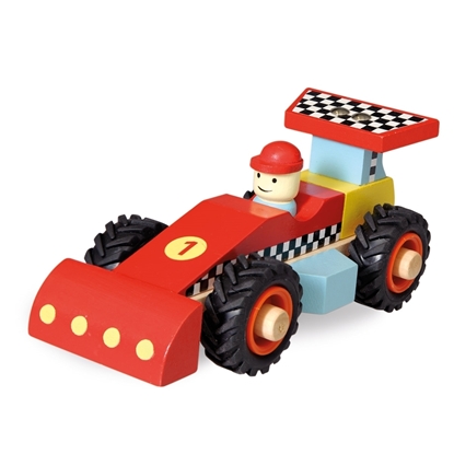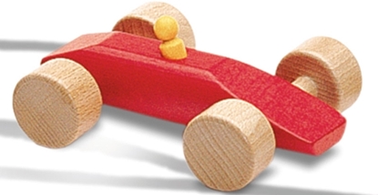 Jouet petite voiture de course en bois de hêtre massif rouge. Toute rouge, excepté ses quatre roues en bois de couleur naturelle, la petite voiture de course jouet est très solide, stable et roule très bien et très loin. Excellente première petite voiture de course pour vos tout petits!