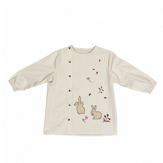 Tablier scolaire blanc avec petits lapinsAge: taille unique de 3 à 7 ansMatériau: 100% cotonDimensions: H 55 cm (de l'épaule au bas du tablier)